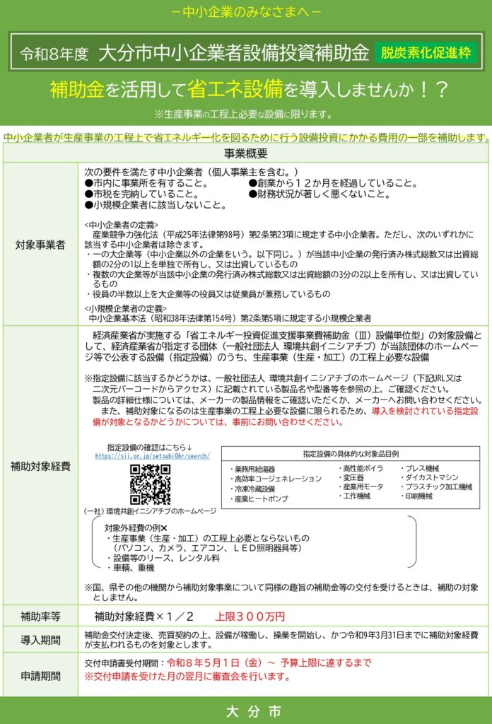 - 【令和8年度】大分市中小企業者設備投資補助金の公募が開始されました!