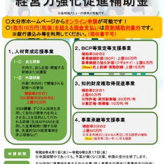 令和8年度大分市創業者応援事業補助金の解説。最大120万円の補助で創業を支援。対象要件や注意点、採択のポイントを行政書士が分かりやすく解説。
